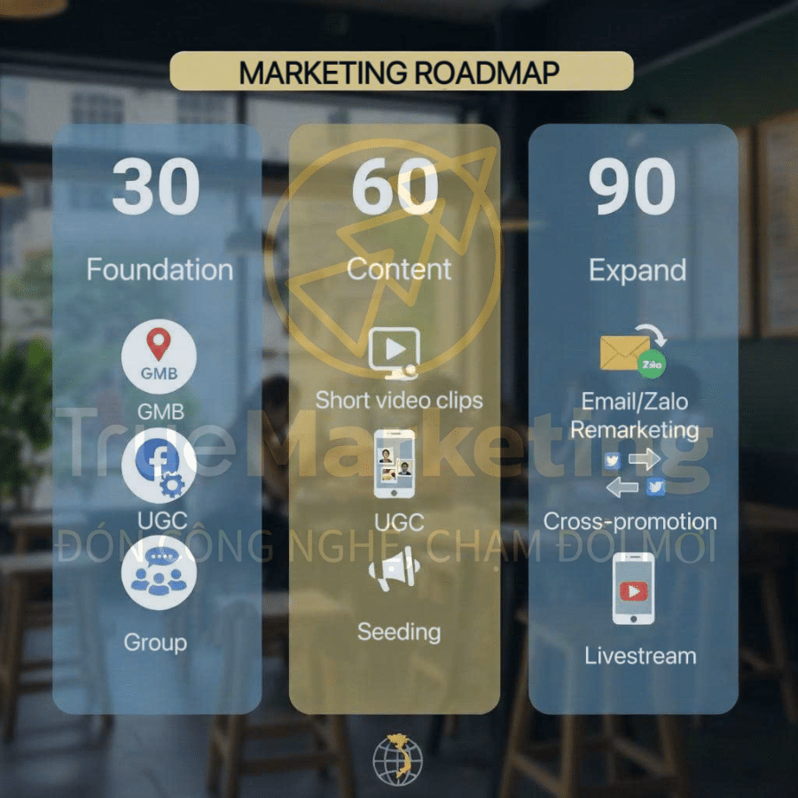 Biết 20 chiến thuật marketing miễn phí cho doanh nghiệp nhỏ là chưa đủ, bạn cần một lộ trình thực thi kỷ luật. Hãy áp dụng mô hình 30-60-90 ngày sau: