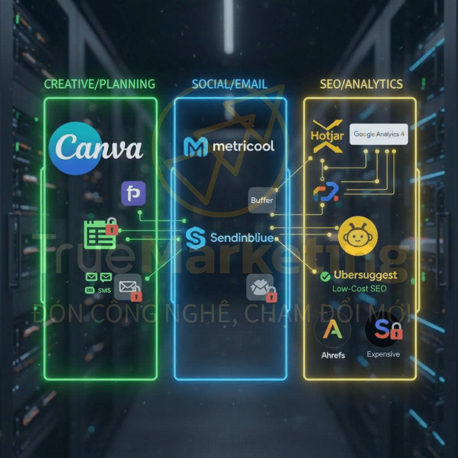Một Marketer có thể quản lý 5 brand chỉ với 20 giờ/tuần? Điều này hoàn toàn có thể khi bạn tự động hóa 70% công việc lặp đi lặp lại. Nếu bạn đang “chìm” trong việc đăng bài thủ công, thiết kế từng ảnh một hay tổng hợp số liệu bằng tay, thì bài viết này chính là chìa khóa. Với tư cách là một người làm nghề 8 năm, tôi đã tổng hợp và đánh giá 24+ công cụ hỗ trợ tốt cho marketing online thiết yếu nhất hiện nay. Mục tiêu là giúp bạn chọn ra “combo” hoàn hảo để làm marketing nhanh gấp 3 lần chỉ với một nửa công sức, đặc biệt phù hợp cho các chủ doanh nghiệp nhỏ và hộ kinh doanh.