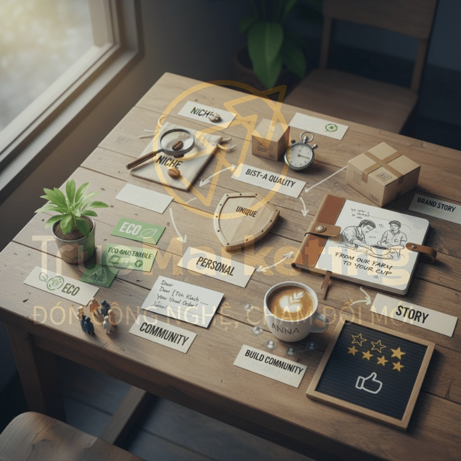 Các thương hiệu nến thơm hay xà phòng handmade (thủ công) đã tìm được chỗ đứng vững chắc bằng cách kể câu chuyện về nguyên liệu thiên nhiên Việt Nam, cam kết không hóa chất (Marketing xanh). Họ không cạnh tranh với xà phòng công nghiệp giá rẻ, mà phục vụ nhóm khách hàng niche yêu lối sống xanh.
