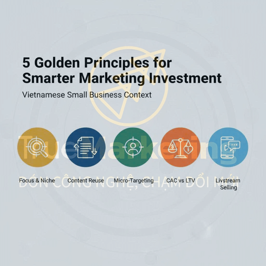 Để thực hiện việc tối ưu hóa chi phí marketing mà vẫn thu hút khách hàng thành công, bạn cần tuân thủ nghiêm ngặt 5 nguyên tắc vàng dưới đây. Đây là kim chỉ nam giúp bạn giữ vững dòng tiền.