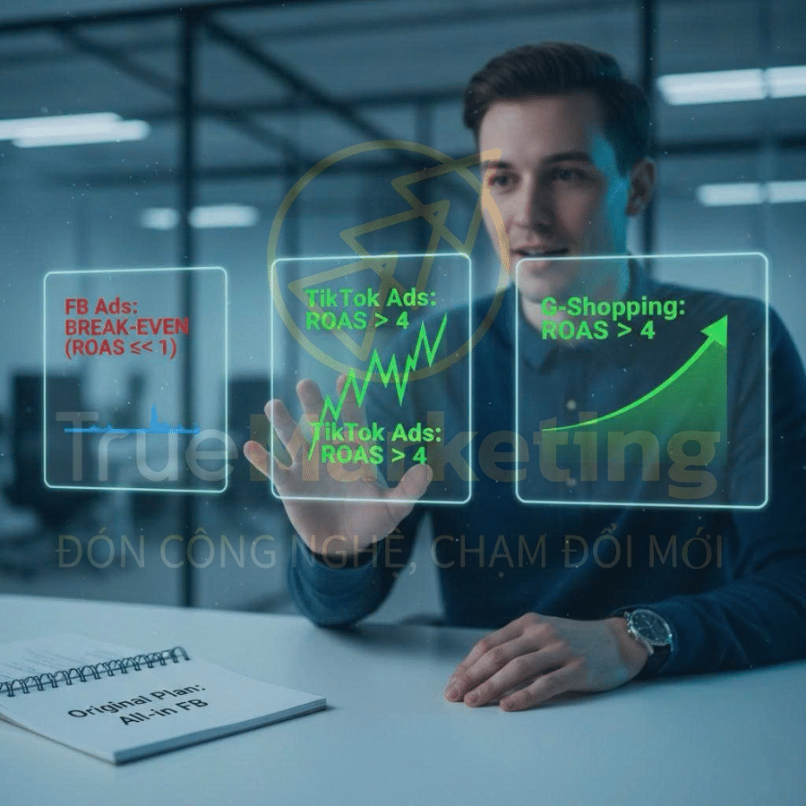 Kết quả thật bất ngờ: Facebook Ads chỉ mang lại mức hòa vốn, trong khi TikTok AdsGoogle Shopping lại mang về ROAS > 4 (chi 1 đồng thu về 4 đồng). Nếu không có bước thử nghiệm với các kênh marketing nào phù hợp trước, họ đã mất trắng cơ hội tăng trưởng từ hai kênh tiềm năng này.