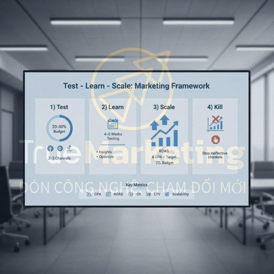 Nếu kênh nào có ROAS dương và CPA thấp hơn mức cho phép -> Scale (Dồn 70% ngân sách vào đây). Kênh nào không hiệu quả sau khi đã tối ưu -> Kill (Dừng lại).
